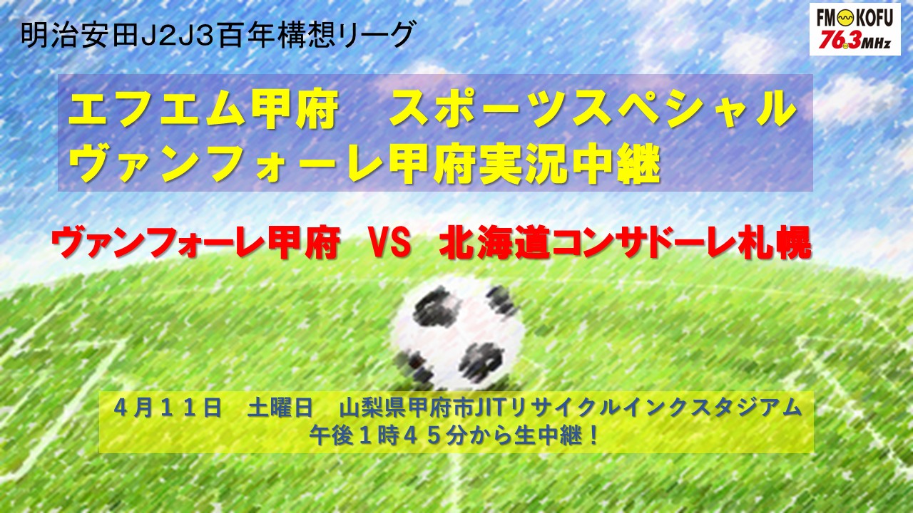 ヴァンフォーレ甲府 VS 北海道コンサドーレ札幌 戦 放送決定!