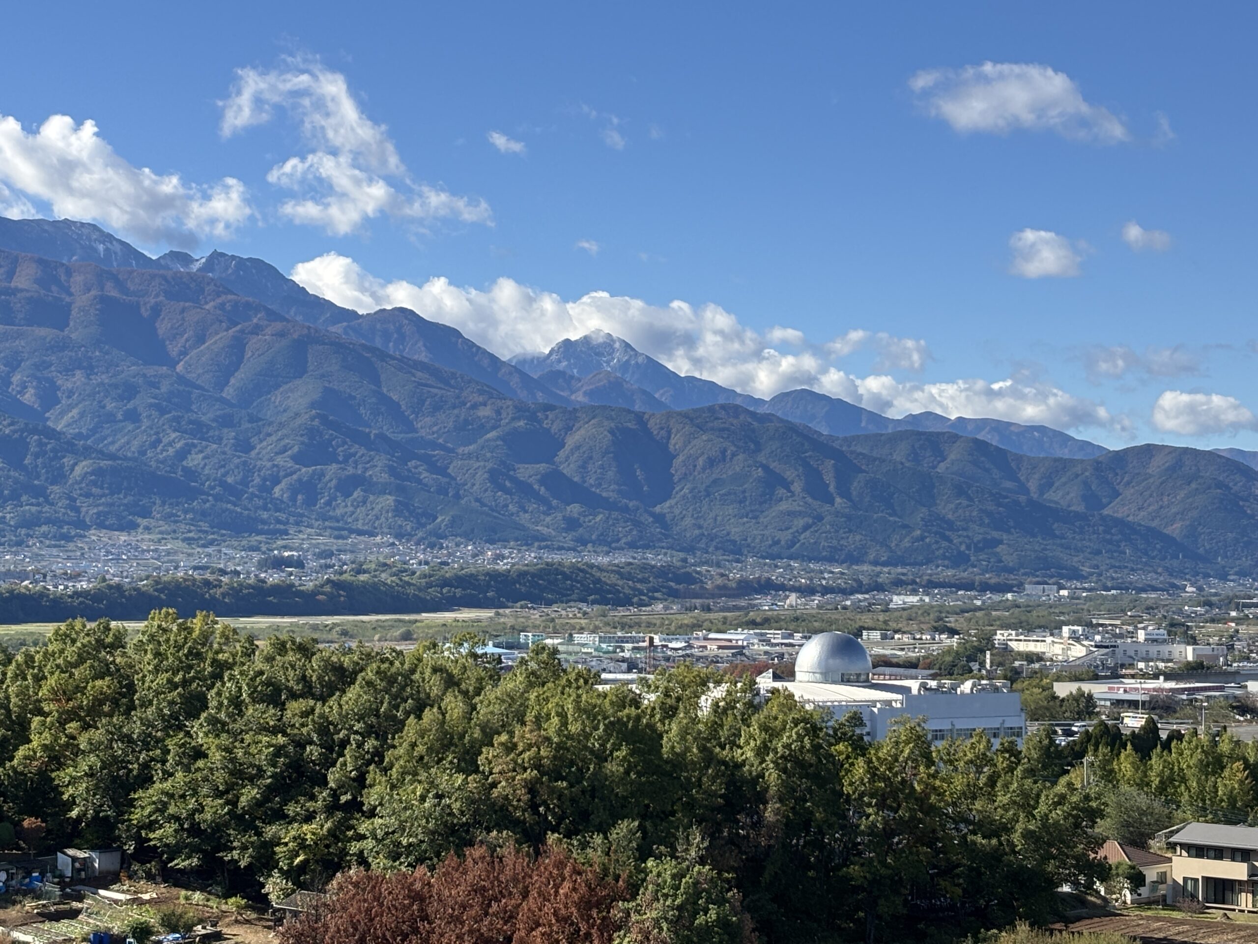 (甲斐市赤坂台総合公園から11月3日(月・文化の日) 午後1時頃撮影) 甲府地方気象台は、11月3日(月・文化の日) 甲斐駒ヶ岳の初冠雪を観測したと発表しました。 これは、 平年(10月30日)に比べて4日遅く、 昨年(11月21日)に比べて18日早い観測です。 甲府地方気象台では、1928年(昭和3年)観測をしており、 最も早い記録は、1951年(昭和26年)9月26日 最も遅い記録は、1993年(平成5年)11月24日 となっています。